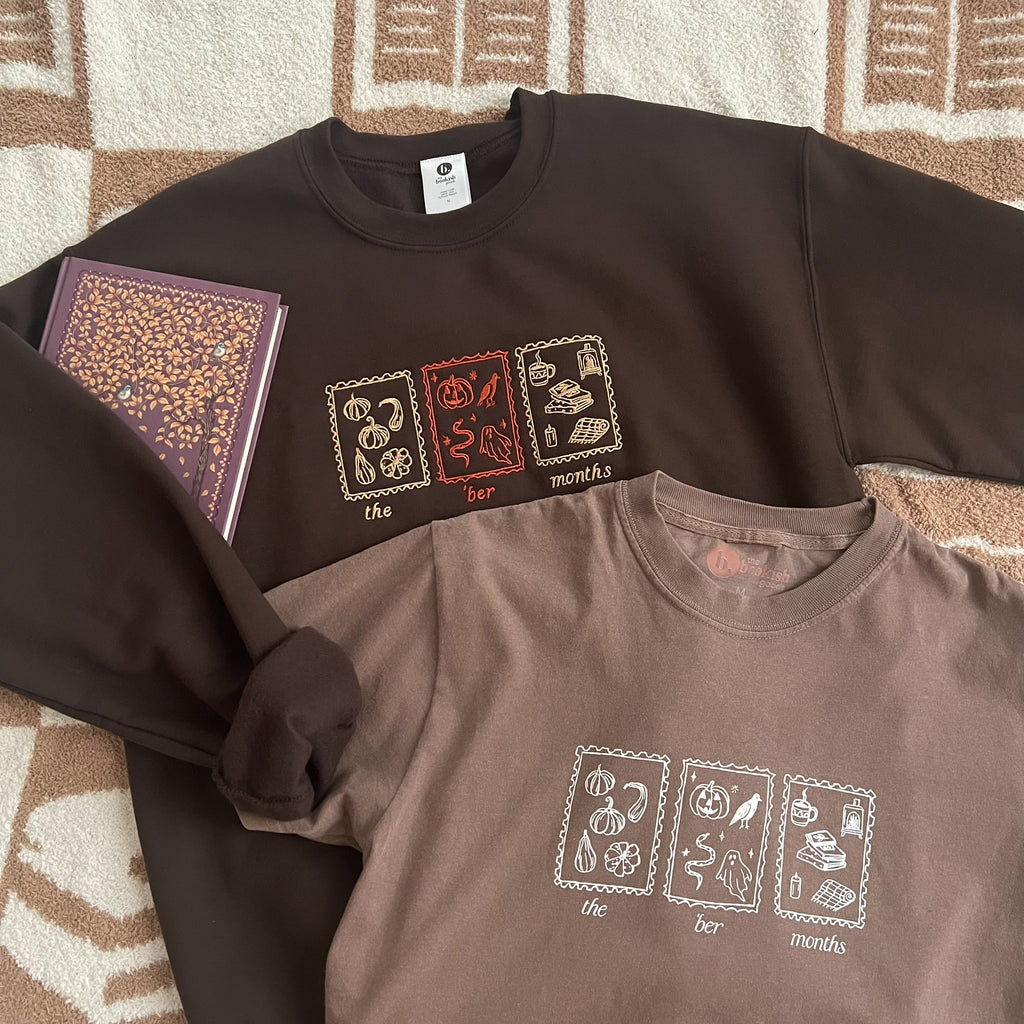 Celebrating the best time of year! This bookish tee is so comfy, high quality & made to last with a soft, vintage look and feel! You will not want to take it off. This tee is embroidered with light pink thread.