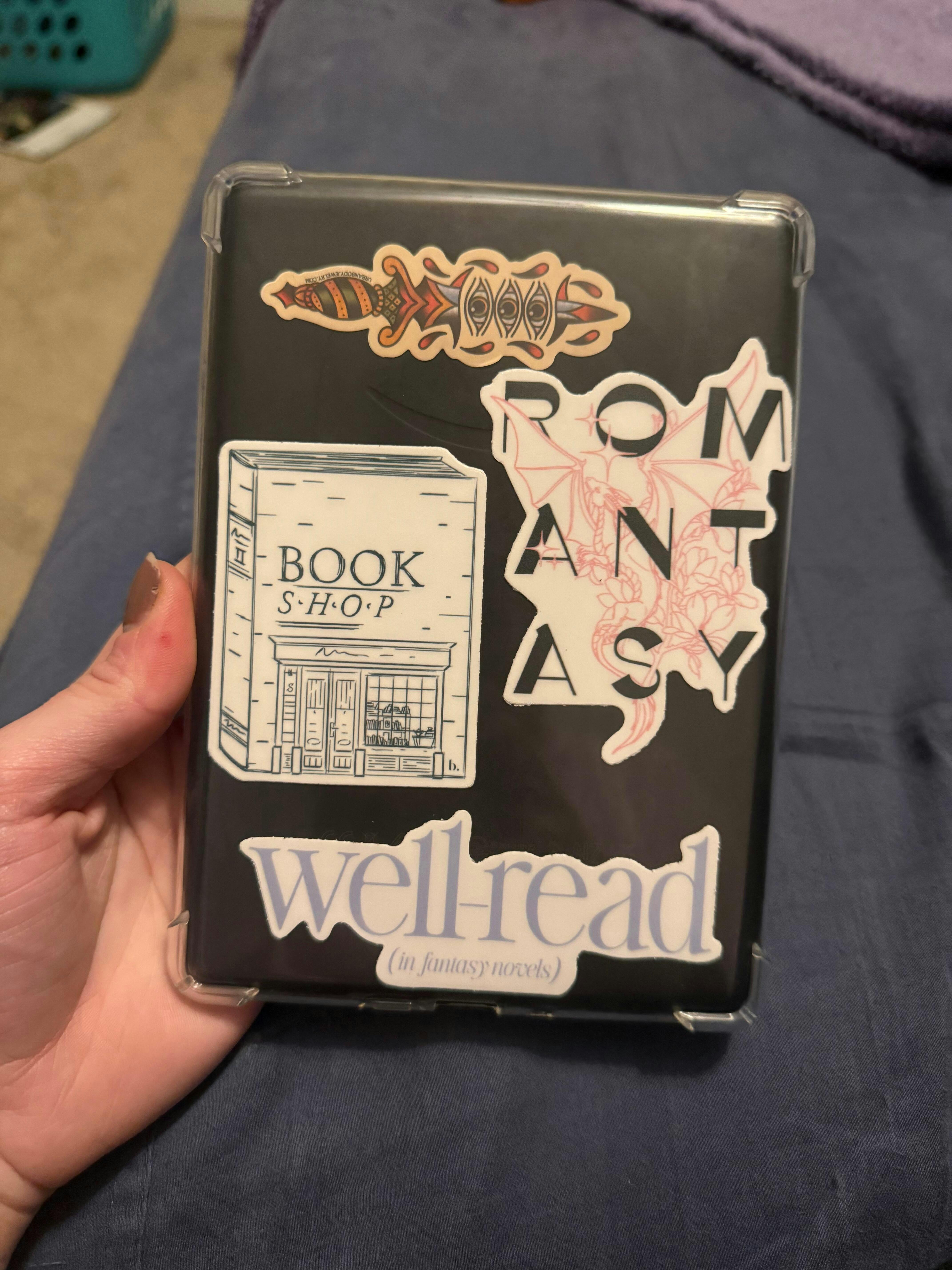 These stickers are printed on durable, high opacity adhesive vinyl. The high-quality vinyl ensures there are no bubbles when applying the stickers. See all of our bookish stickers here.