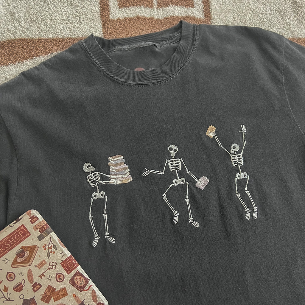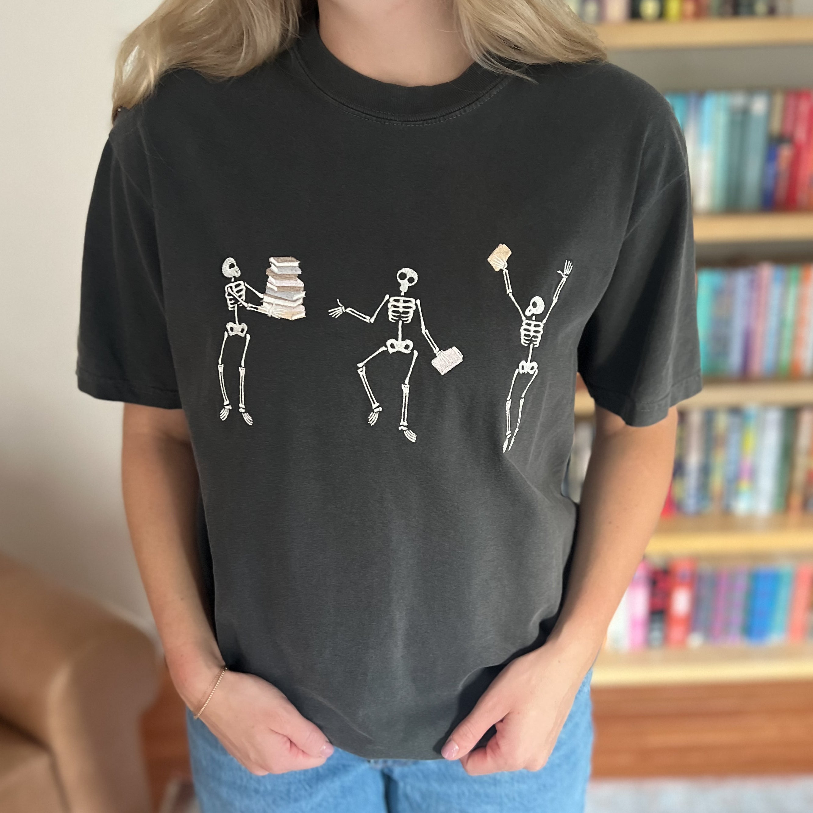 Your new bookish halloween tee is here! This embroidered bookish tee is so comfy, high quality & made to last with a soft, vintage look and feel! You will not want to take it off. This tee is embroidered with light pink thread.